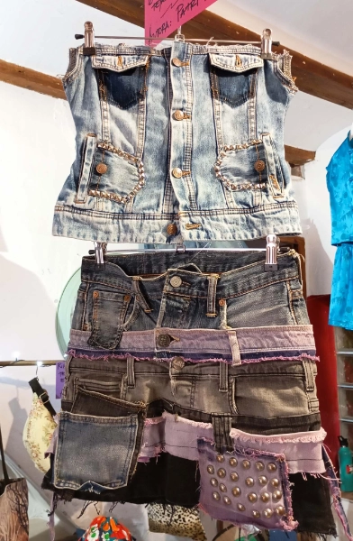 Trabajamos principalmente con materiales recuperados y puedes traer tu propia “basura textil” para transformarla en algo nuevo.